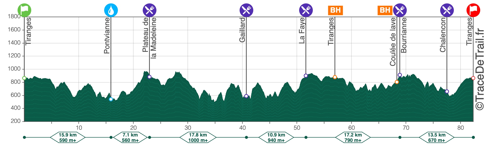 Plus de 4600 m de d+ sur un terrain très souvent technique, cela ne s’improvise pas. La succession de montées-descentes entrecoupées de parties plus roulantes en font un trail unique. Pour être finisher, il faudra dompter la vallée de l’Ance de nuit en passant sur notre petite passerelle au pied de Chalencon, avant d’arriver au point culminant situé au sommet de la Madeleine avec un point de vue exceptionnel. Vous retraverserez l’Ance sur une passerelle câblée. Il vous faudra ensuite apprécier la vallée de l’Andrable avant d’enchaîner avec le passage au saut du Bezan. Vous arriverez ensuite à la coulée de lave puis au village médiéval de Chalencon. Vous passerez enfin par les ponts du Diable et de Bounery, avant la dernière ’’petite grimpette’’ en direction de l’arrivée. Oui, vous pourrez dire .. « le TTT, je l’ai fait! »